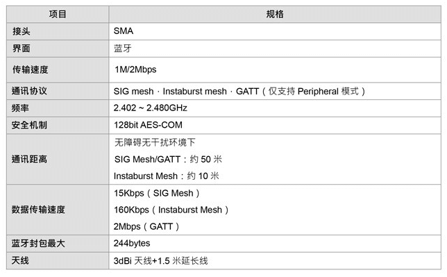 -IG Mesh: 標準藍牙Mesh協議,15Kbps傳輸速率,有效距離約50m