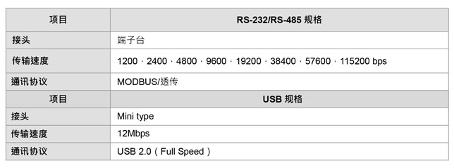 串行通訊規格: